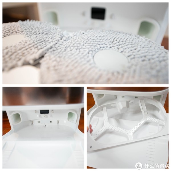 我经过了刚才那种高强度的污渍处理, 然后直接将扫拖电脑开入机房清洗, 之后取掉镂空清洗骨架后, 擦拭底座内看看污水残留, 和污渍情况, 我个人觉得还是十分干净的。