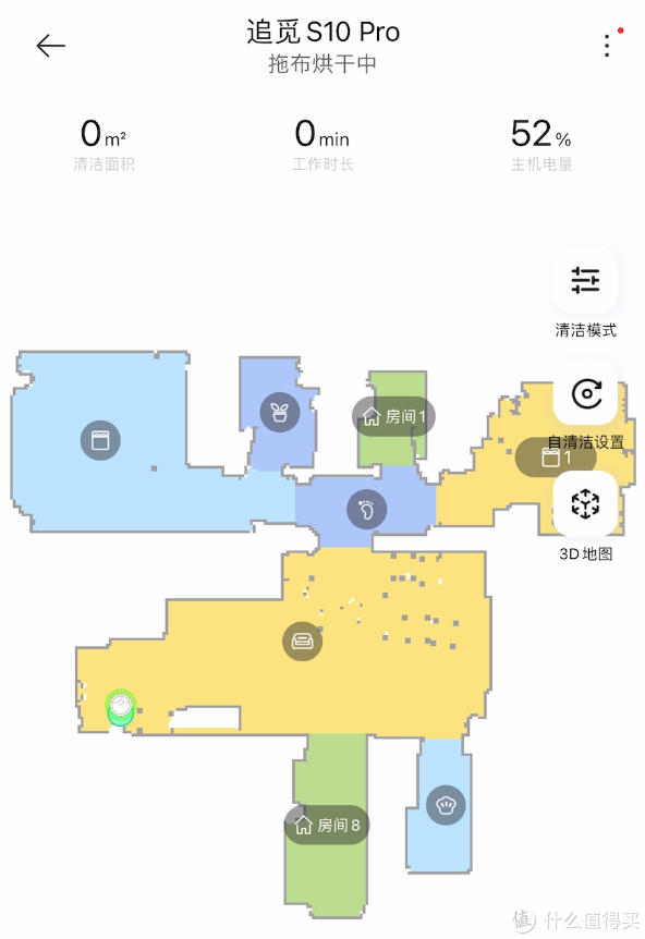 而且所有的扫拖电脑, 除了电脑自身的洁净能力以外, 最重要的点就是地图规划, 也就是导航上面。 追觅S10Pro做完旗舰级的商品, 具备5Min高速建图能力, 支持3D立体地图, 房间识别, 障碍标注, 还有实景的障碍显示, 这些也是现阶段Alzonne机的旗舰等级的商品能力。